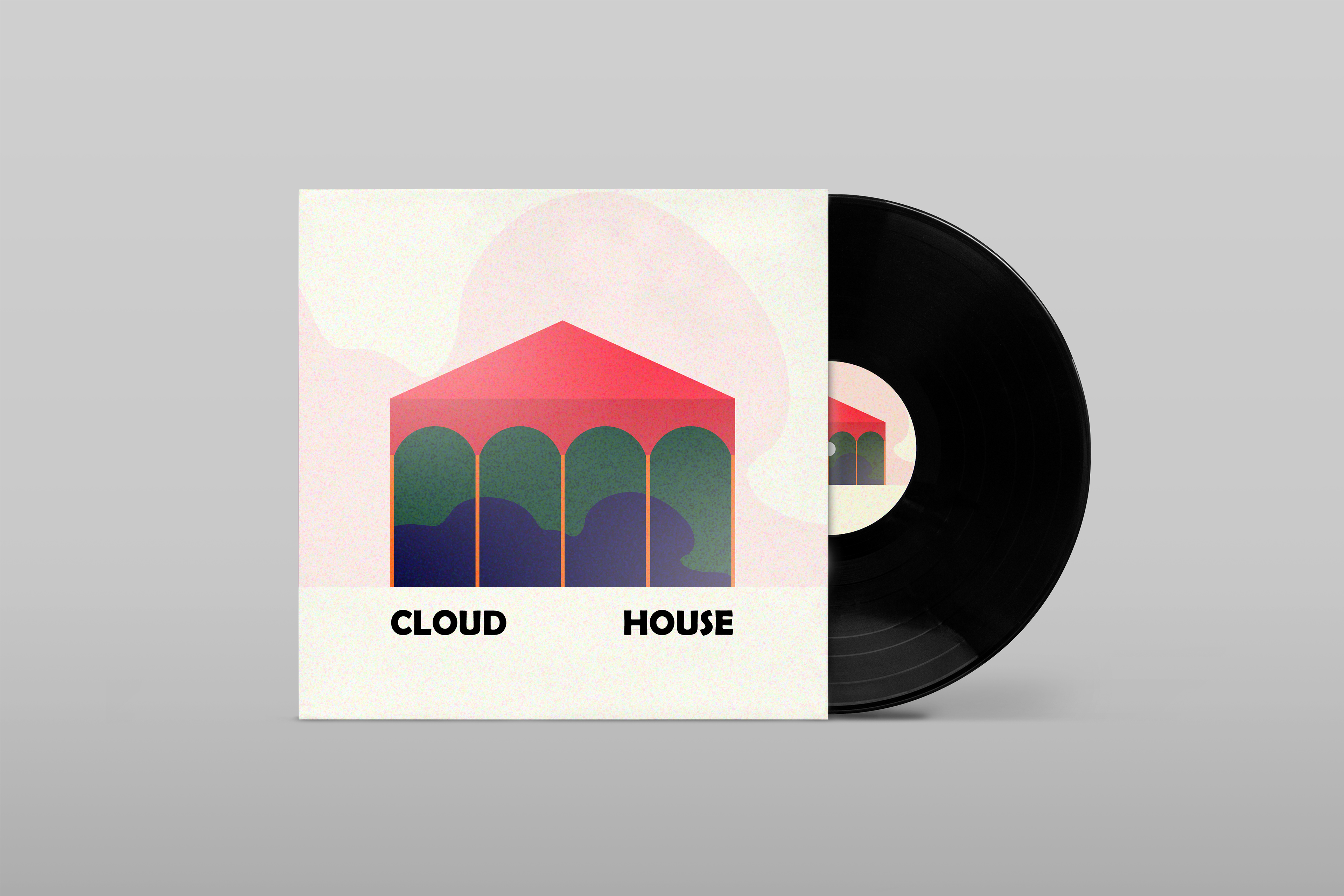 vinyl record cover, 2021 Cloud House is a concept design project for a music band. The branding consists of vinyl label, a front and back cover making it a complete piece.
